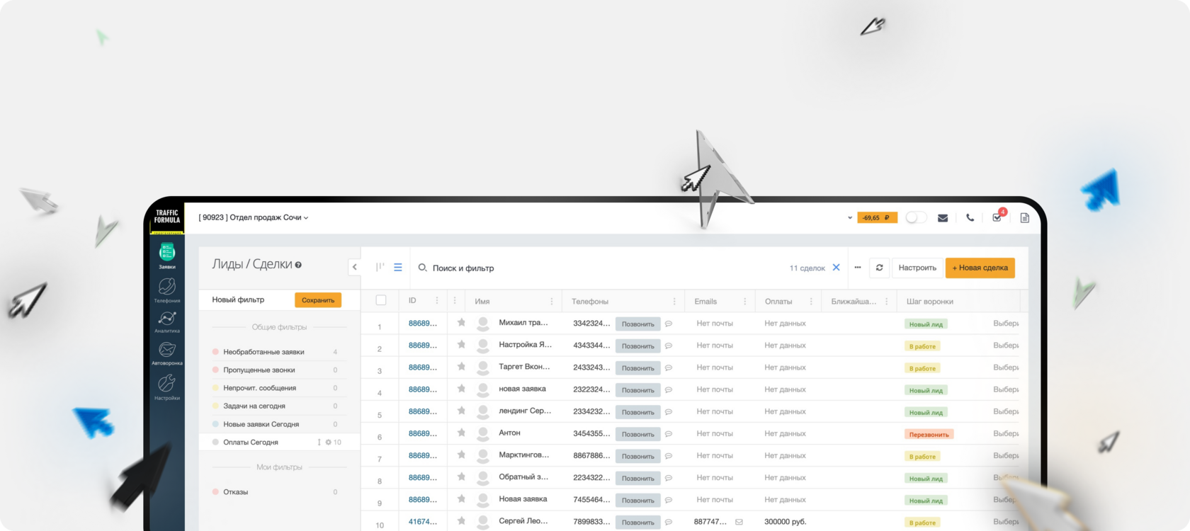Работайте с базой клиентов по воронке продаж, автоматизируйте процессы, получайте новых лидов, анализируйте продажи